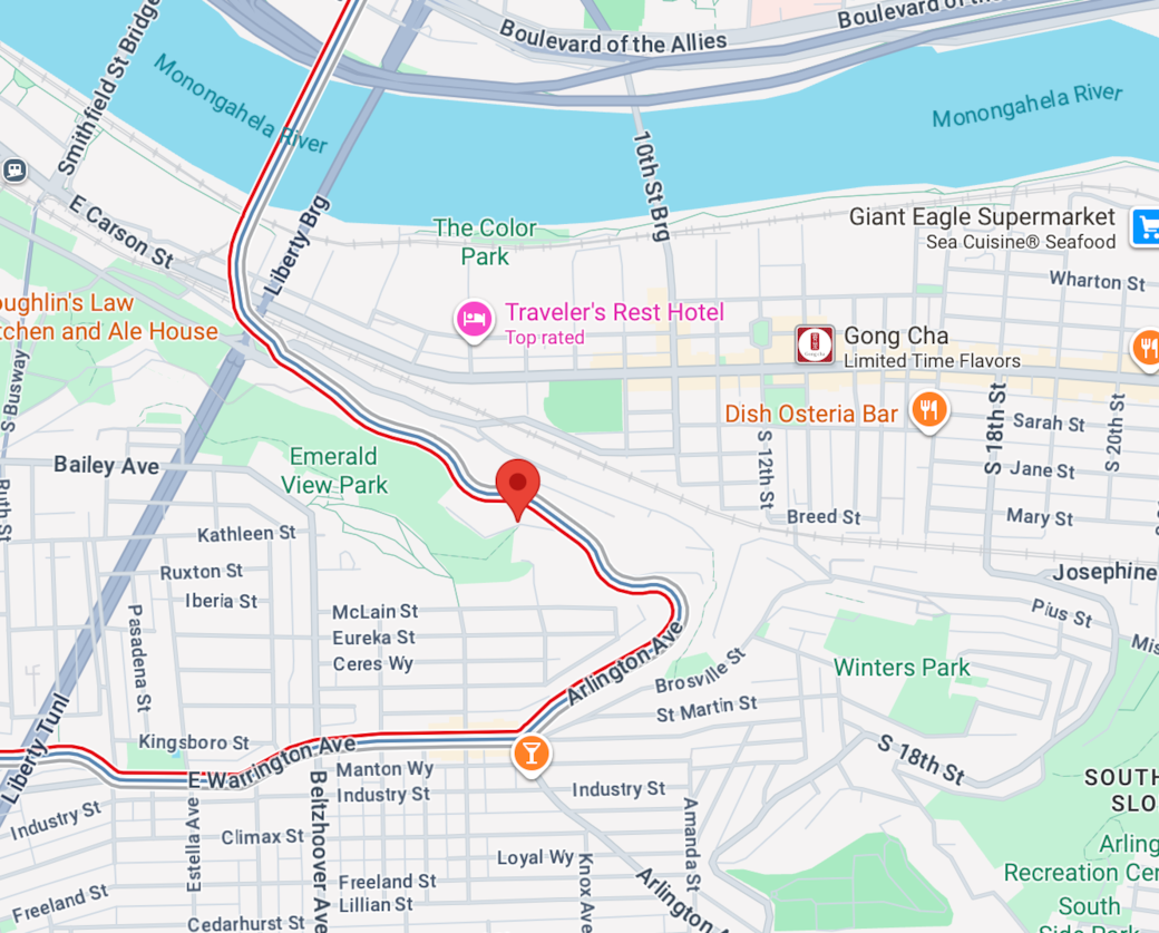 It is best to use GPS, the address is 27 Roanoke St., Pittsburgh, PA 15203. Roanoke is a sharp hairpin turn to the right if traveling up from the city, Liberty Tunnel or Station Square along Arlington Rd. If you are coming from Allentown / Warrington along Arlington Rd., then just bear left onto Roanoke St. The street is 1 lane but two ways, go slow and be careful. This is the price we pay to be perched on the cliffside with these amazing views.